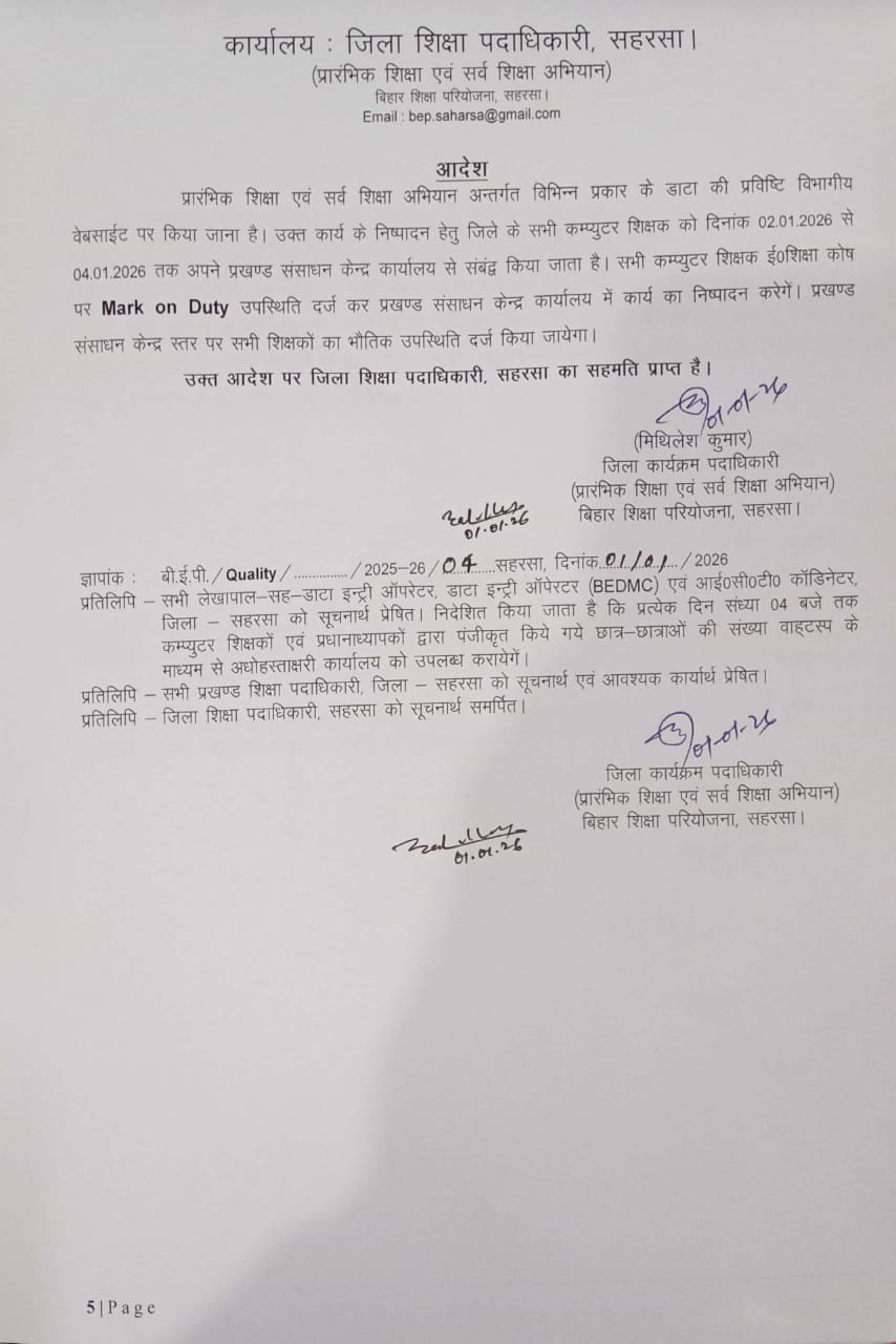ACP (ABHILASH RANJAN), BEPC SAHARSA KO SABHI NIRGAT PATRA KO PORTAL PAR UPLOAD KARNE HETU AADESH |