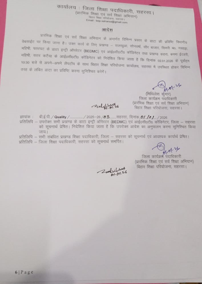 ACP (ABHILASH RANJAN), BEPC SAHARSA KO SABHI NIRGAT PATRA KO PORTAL PAR UPLOAD KARNE HETU AADESH |